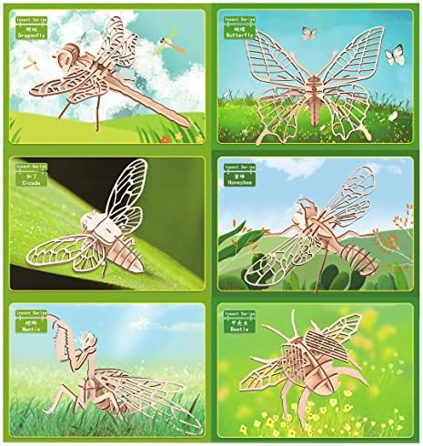【Premium Wood】: Set contains 6 types of Insect puzzles – mantis, cicada, dragonfly, honeybee, butterfly, beetle, select high quality natural 3mm boards, environmentally friendly, non-toxic, no odor, safe to use