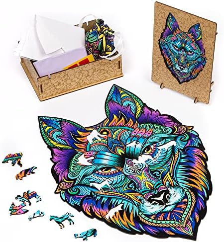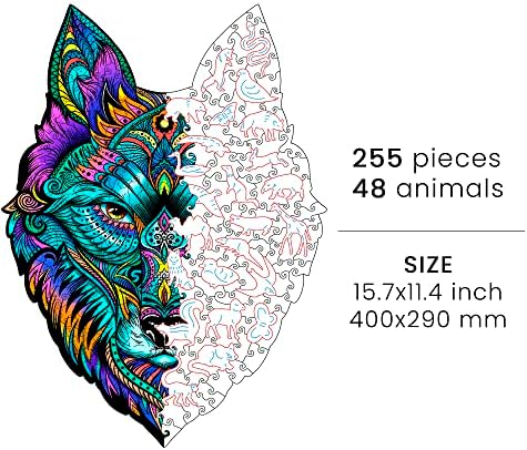 Cavka Wooden Jigsaw Puzzle – 255 Pieces – Unique Irregular Animal Shaped – 11.4 x 15.7 inch – Fantasy Wolf – for Adults Kids Teens Seniors – Challenging Family Game + Fancy Gift Box & Mounting Set