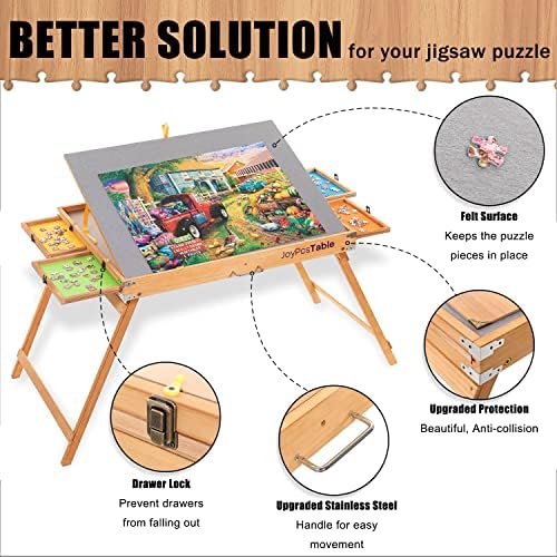 PERFECT SIZE – Your new wooden puzzle workspace measures 36″ x 27″ and can fit a 1,500-piece puzzle. Four large, colorful storage drawers help clearly sort your puzzle pieces. The foldable puzzle table legs are retractable, so you can store it under your bed or couch